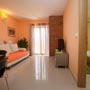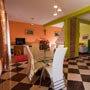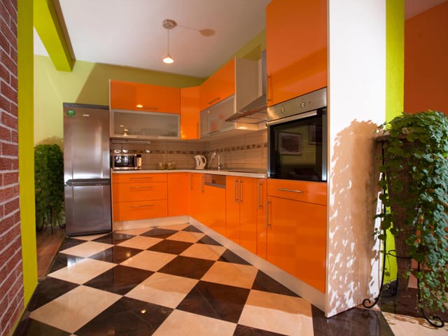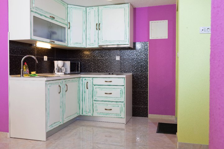 The apartment is fully equipped. It has a room with orthopedic bed, wardrobe and bathroom with jacuzzi tub. The living room has a big sofa and extra bed if needed. The kitchen is full equipped.
