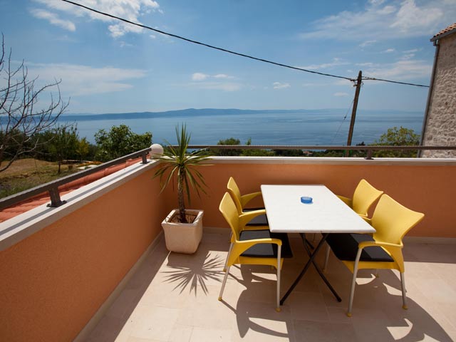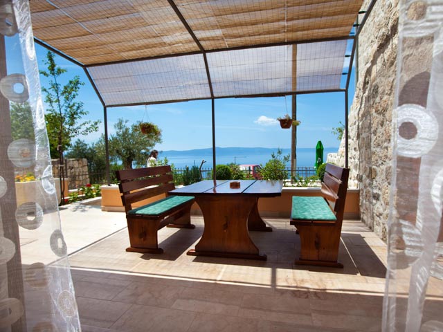 The apartment is fully equipped. Room on the gallery with magnificent view on sea and islands. The living room has a big sofa and extra bed if needed. The kitchen is fully equipped.